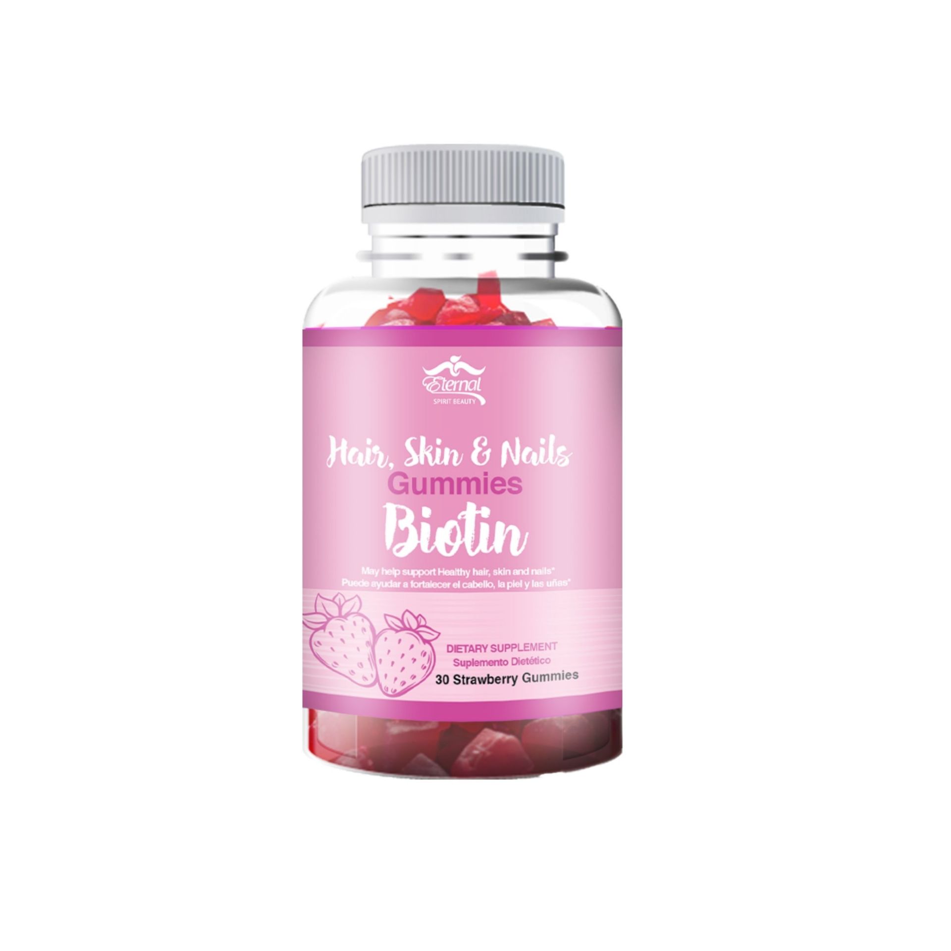 Estas gominolas contienen Biotina, una vitamina importante que puede ayudar a la salud de la piel y el cabello. Incluye Vitamina C para ayudar en la construcción de Colágeno.